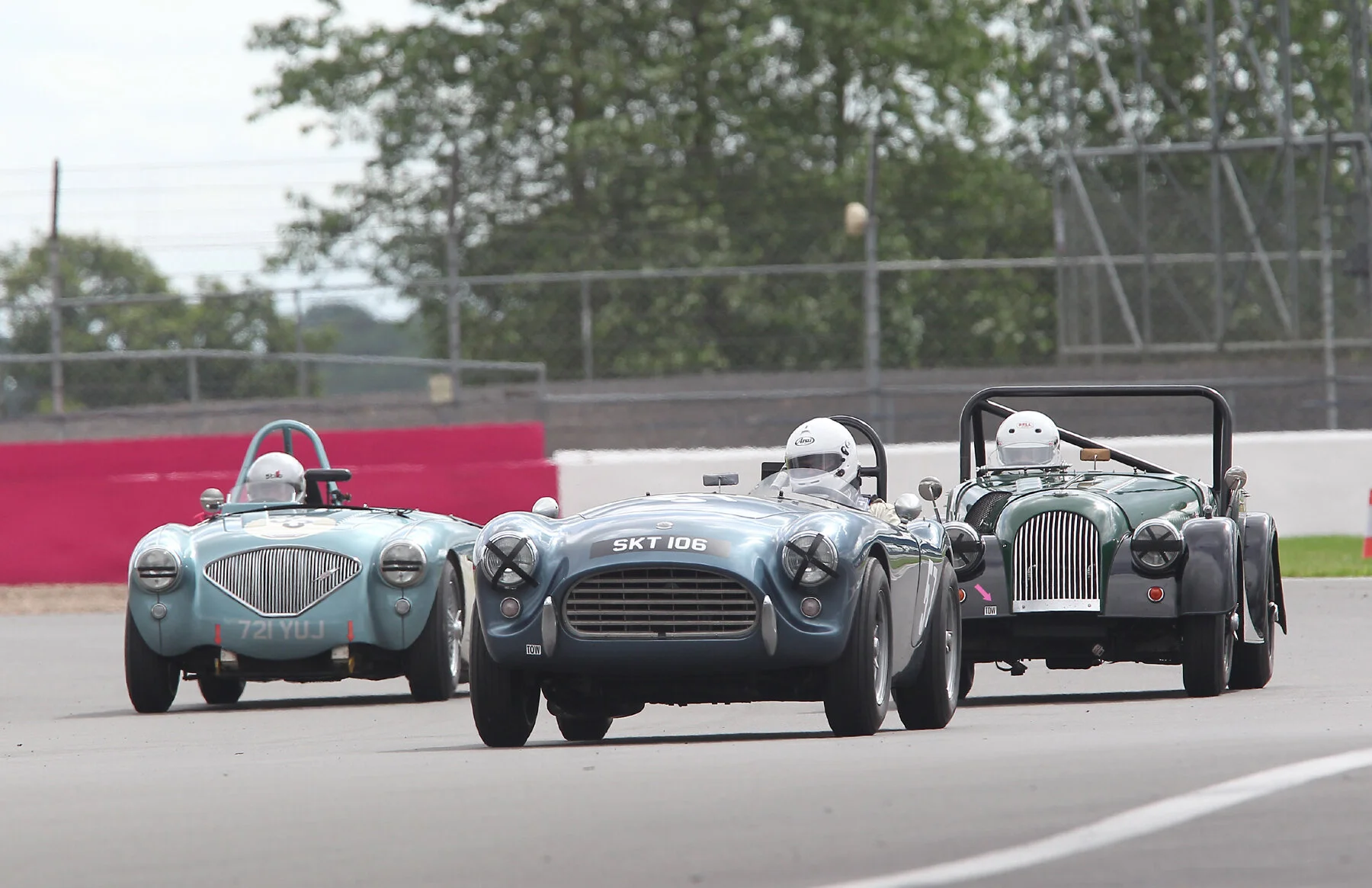 Qualifying - the first of Mick Walker’s great shots. L-R Paul Kennelly, Mark Morgan & Richard Thorne, who was another not to make it to the grid in his Morgan Plus 4 ‘Baby Doll’.