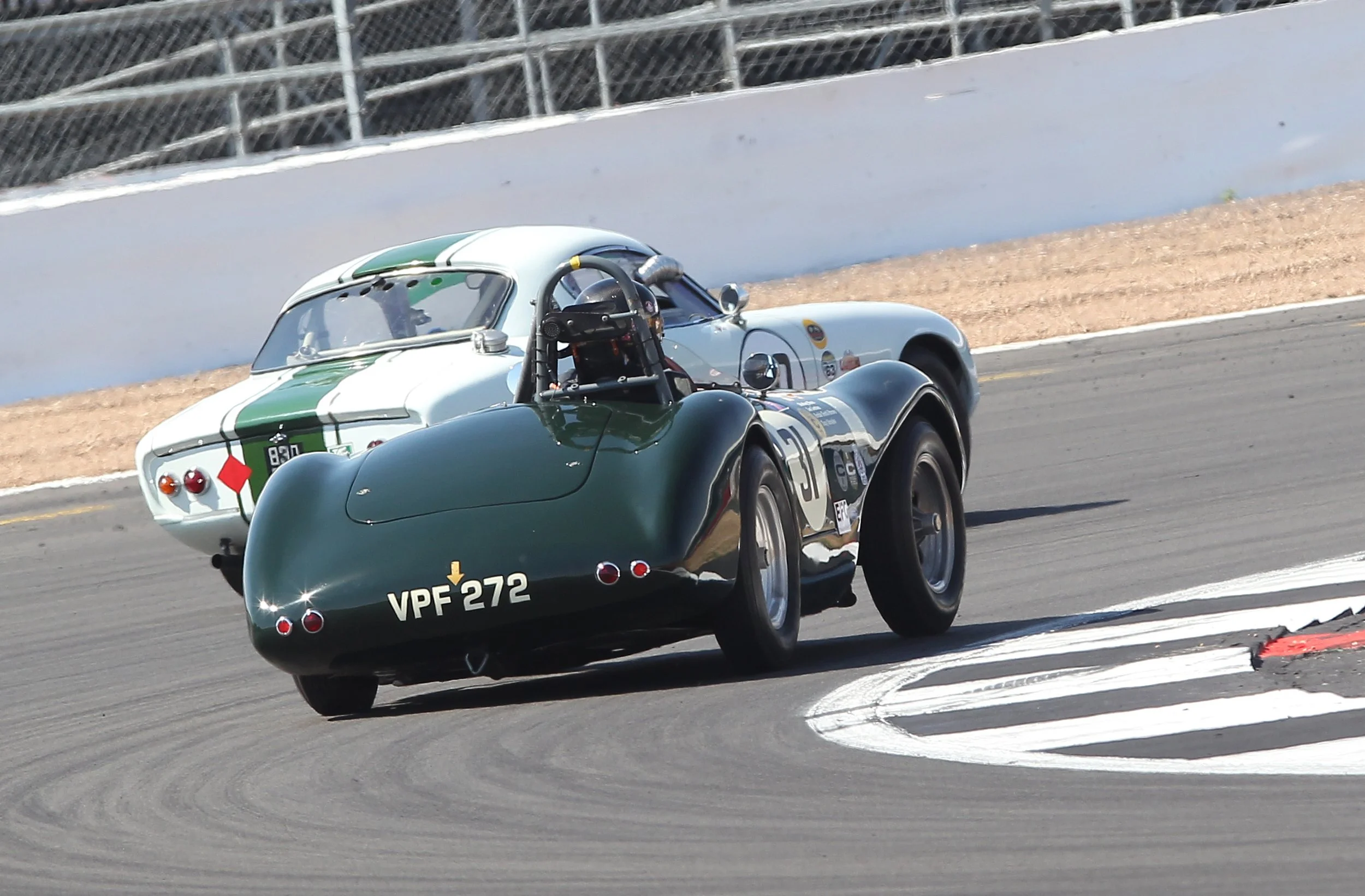 There was to be a nasty sting in the tail for the on the road winners though since both drivers had been caught speeding (very marginally!) in the pitlane. ‘Rules is rules’ and whilst the breach was in respect of the circuit requirements, once recorded, FISCAR had to apply its own set rules for such a breach and dock the Elva 5 places. Paul Woolmer has since graciously written to me to say that ‘I was not too bothered about the Silverstone Penalty to be honest, we were caught fair & square ……. at 63 & 65kph ….’. It meant of course, that the next 4 cars were promoted above the two Pauls, giving Murray and Andy Shepherd the victory and it has to be said that they too deserved it and the battle between Murray and Paul Woolmer in the early laps have been one of the highlights.