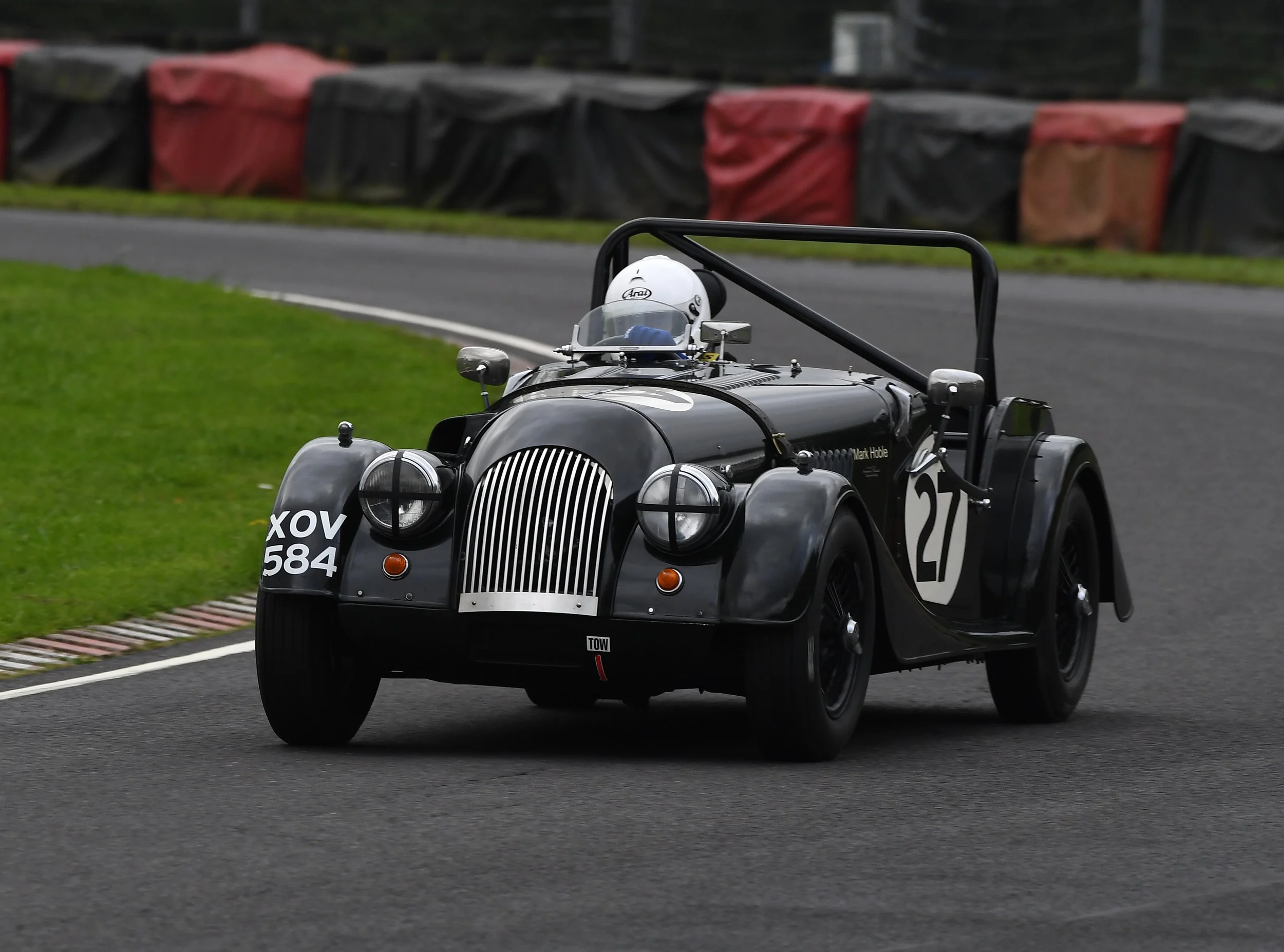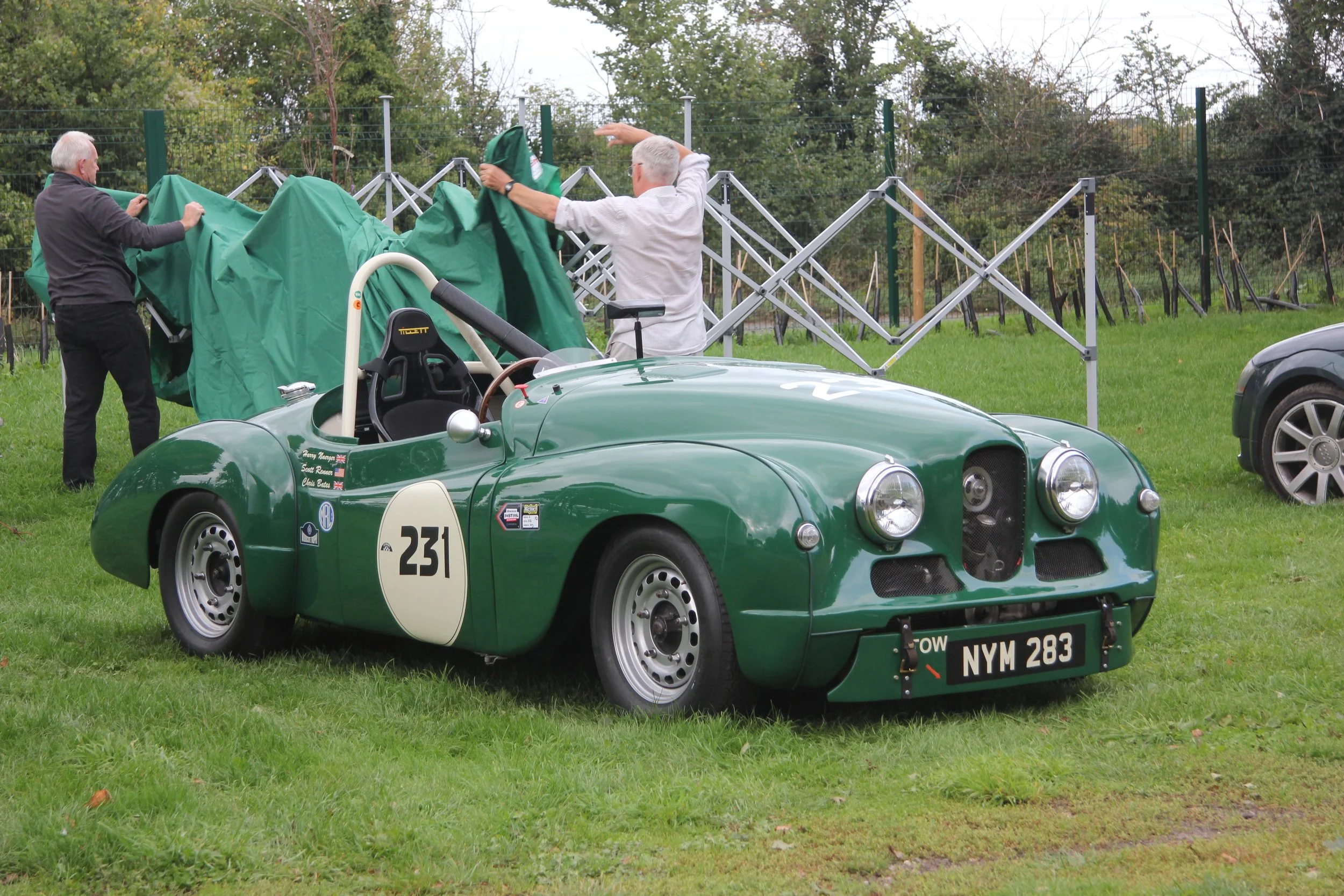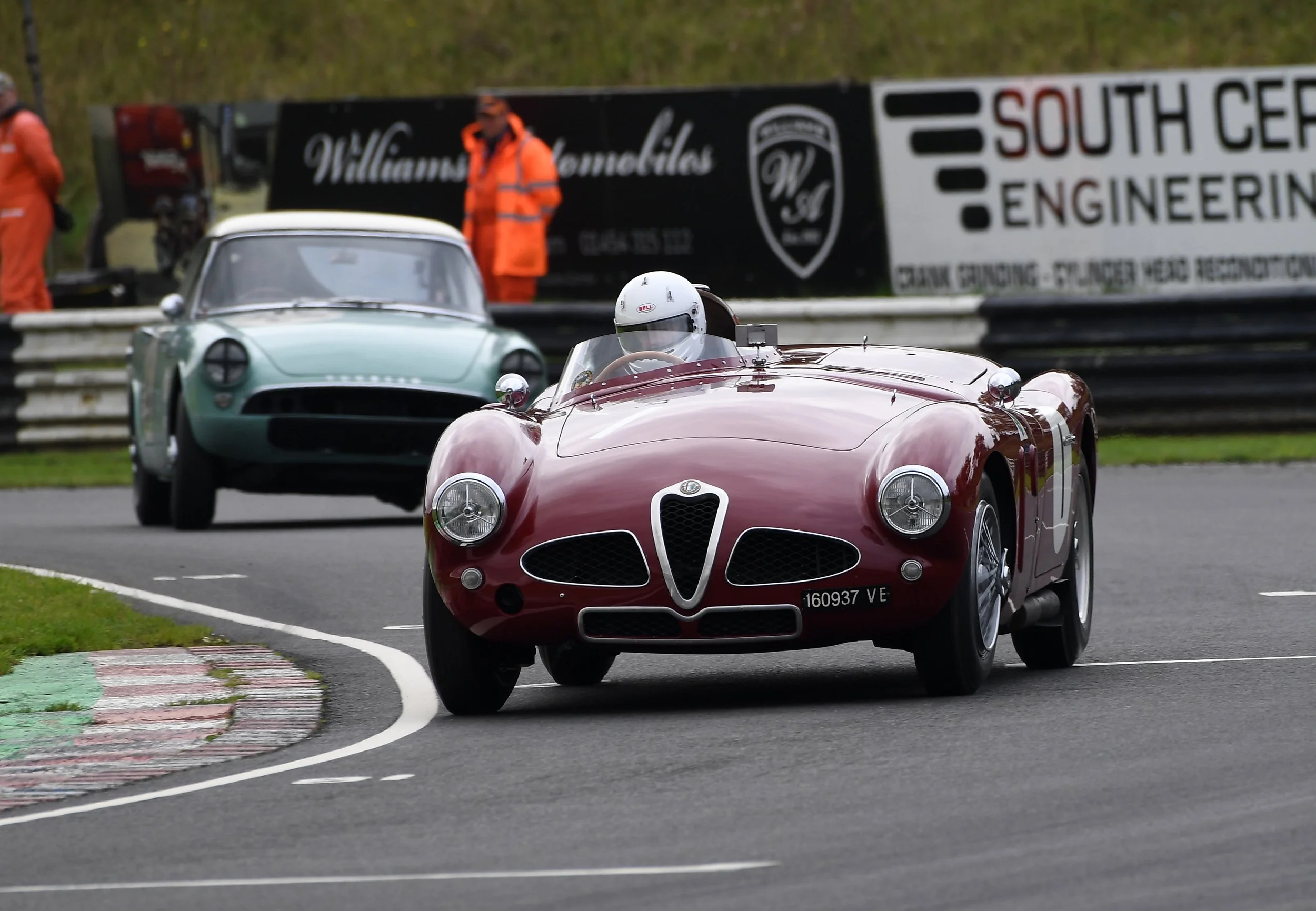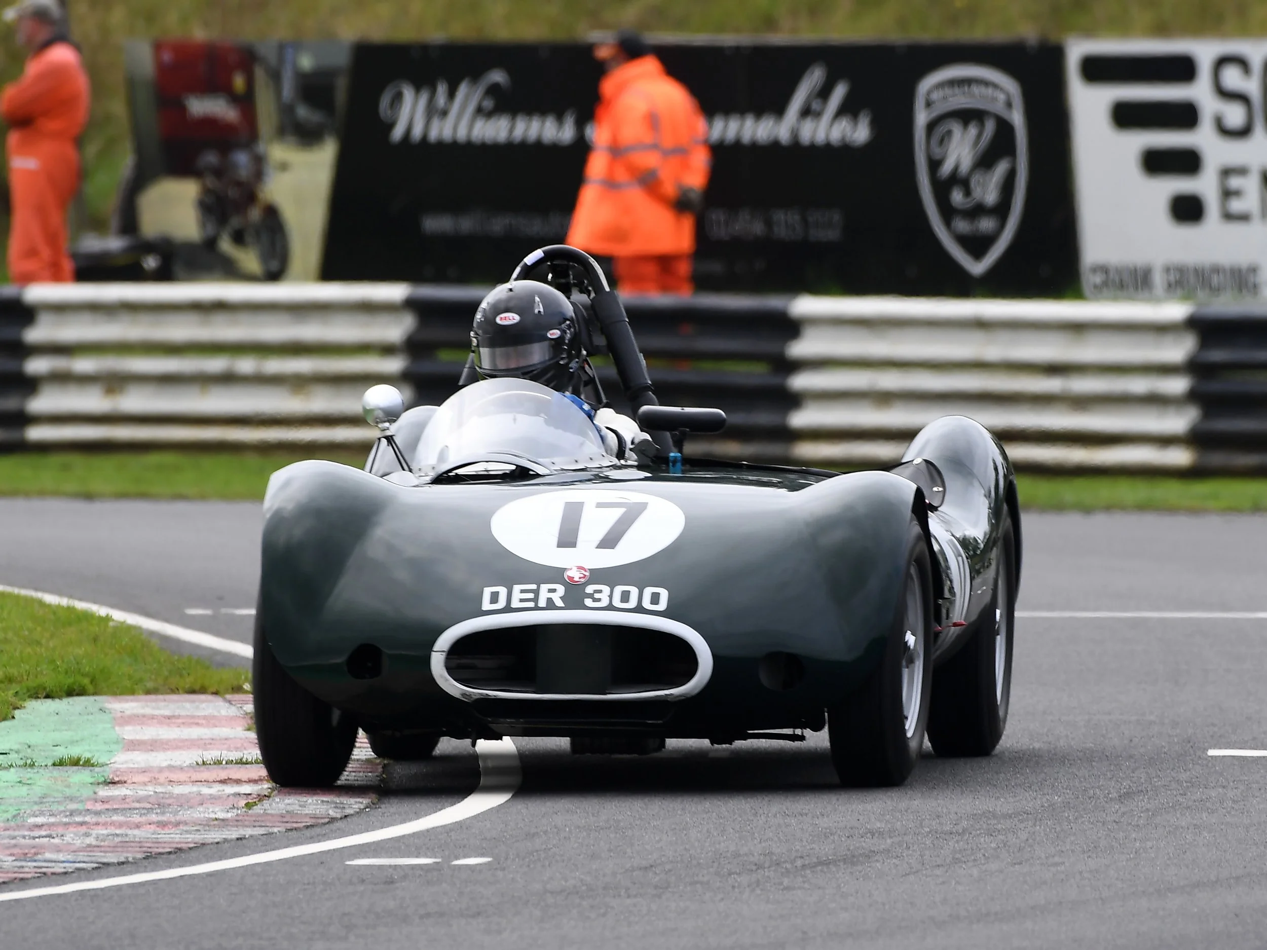 Mark Daniell was next up in his MGA Twin Cam, on 1.28.361, sharing row 6 with Mike Henney in the Turner Climax in a very close time of 1.28.448 and this had all the makings of a close encounter. Mark Hoble was 13th on the grid, in a time just half a second off Mike’s time on 1.28.984, in his Morgan +4 whilst alongside was Chris Mann, even closer on 1.29.053, in the Alfa Romeo Disco Volante, a car that is now so familiar to us, we sometimes overlook how incredibly special it is. In 15th, Barry Dye had his Lotus Elite in 15th, with a time of 1.30.278 on what in effect is his local track, although I use the word ‘local’ advisedly since it’s still a bit of a trek from Cornwall! He shared row 8 with Peter Baker’s lovely Aston Martin DB2 and it was good to see him back with us, on 1.31.047. Tristan Bradfield had qualified his Sunbeam Alpine Le Mans in a time of 1.31.047, but had pulled in early with oil pressure concerns. Alongside Tristan, Chris Bates had put Harry Naergar’s Jowett Jupiter in 18th position with a 1.32.576. Ed Shah was 19th on a time of 1.33.254 and only a very little slower on 1.33.358 was Gareth Evans in his Sunbeam Alpine. Unfortunately, after two hard years of opposite lock cornering, the rear nearside hub on the Alpine cried enough and decided to part company with the rest of the car, bringing Gareth’s qualifying to an early close and preventing a race start. Were we to be short of Sunbeam Alpine representation in the race?