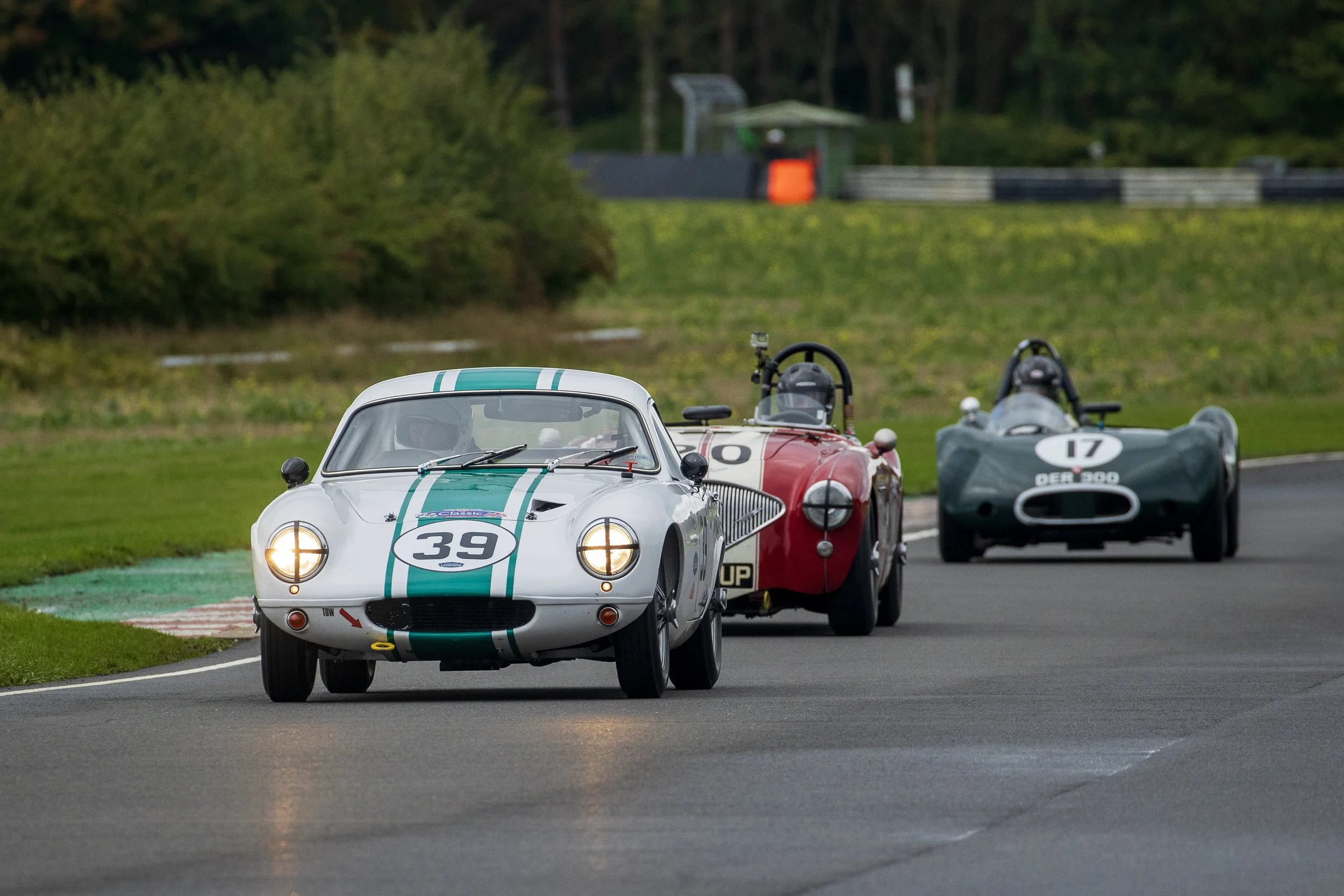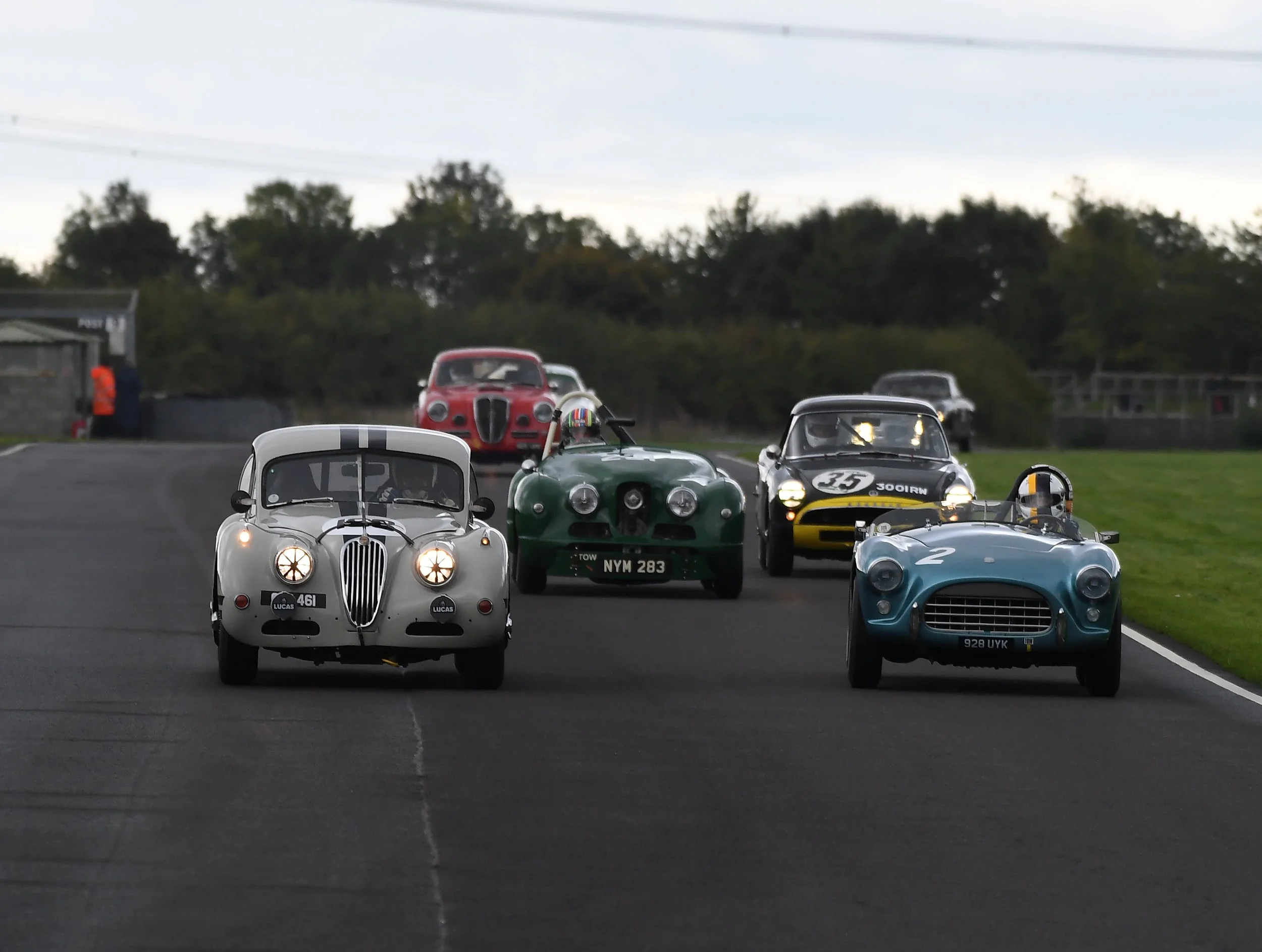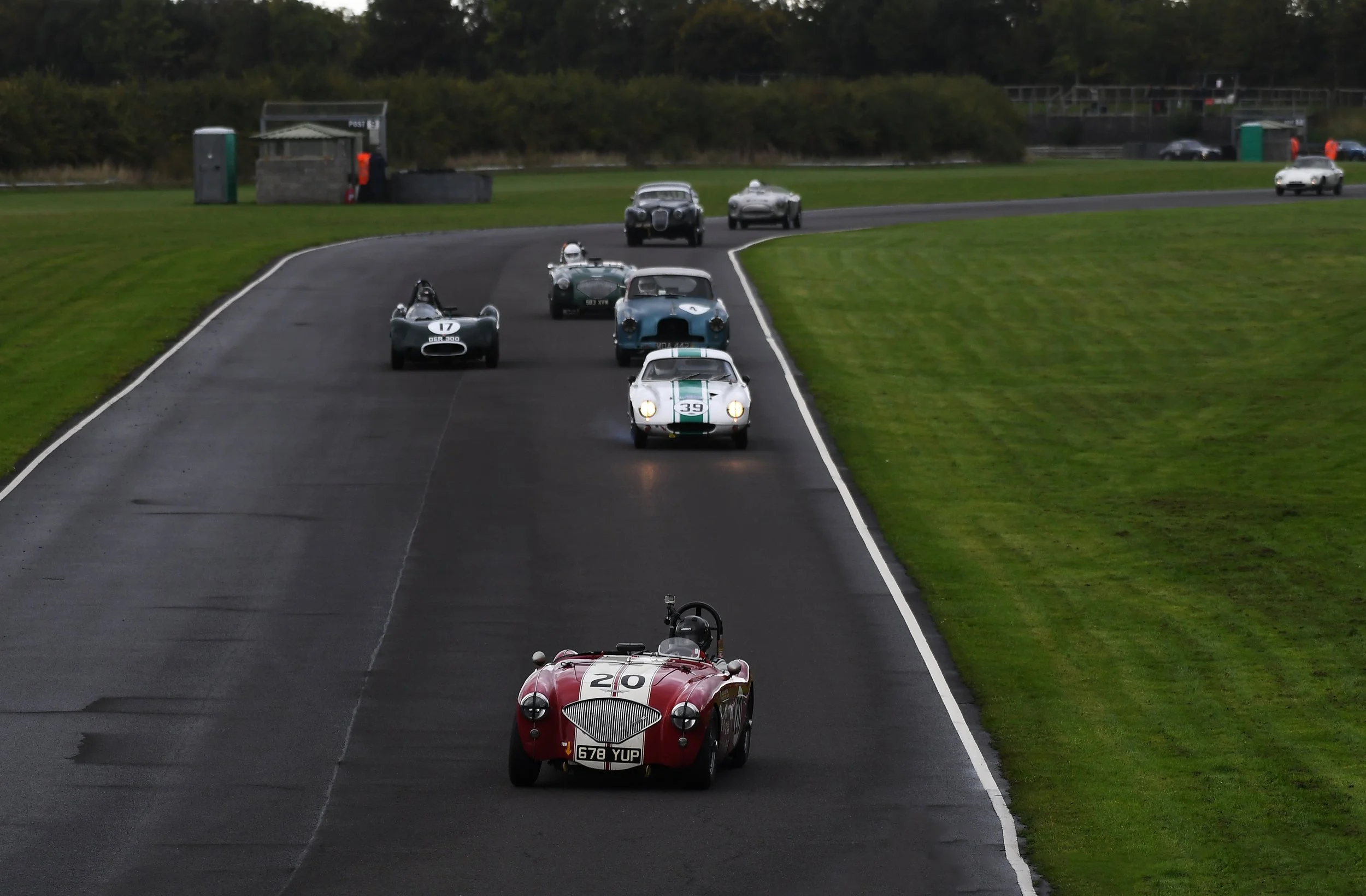 Newcomer to FISCAR, Read Gomm in his smart Jaguar XK 140 clocked a 1.34.741 to occupy the 11th row with Mark Shears alongside, 22nd in his Flat Rad Morgan +4 in a time of 1.34.445. Jeremy Woods was 23rd in the Triumph Italia on 1.35.479 and 24th, Jason Kennedy in his Lancia Aurelia B20GT on a time of 1.35.774. On the 13th row sat the Aston Martin DB Mk III of Simon Jefferies having recorded a best time of 1.36.162, with Stuart Dean alongside in the MG DJS Coupe on a time of 1.37.941. On the final row, we had Andy Cox in his Triumph TR3 Falcon, in an unexpectedly low grid position, with a time of 1.37.687 and Mark Campbell on a 1.40.620 in his ex Le Mans privateer Aston Martin DB2. Altogether another splendid grid of FISCAR cars for our season finale.