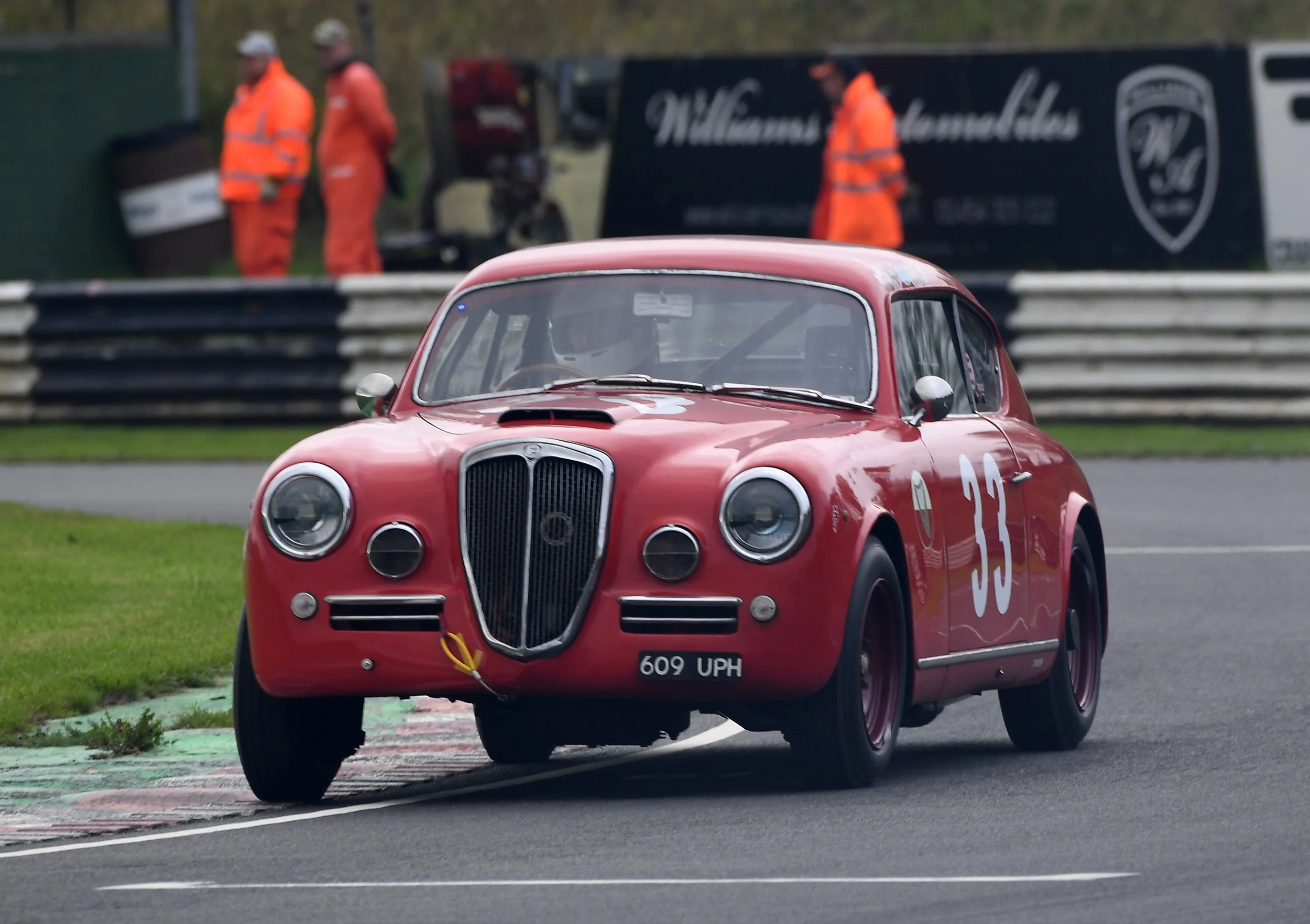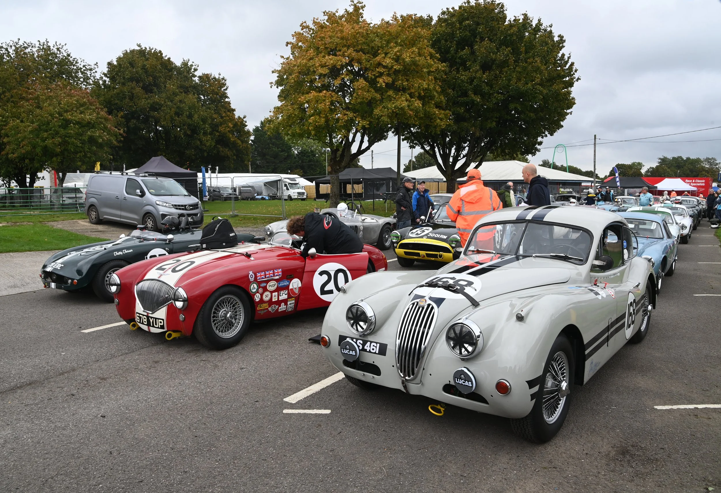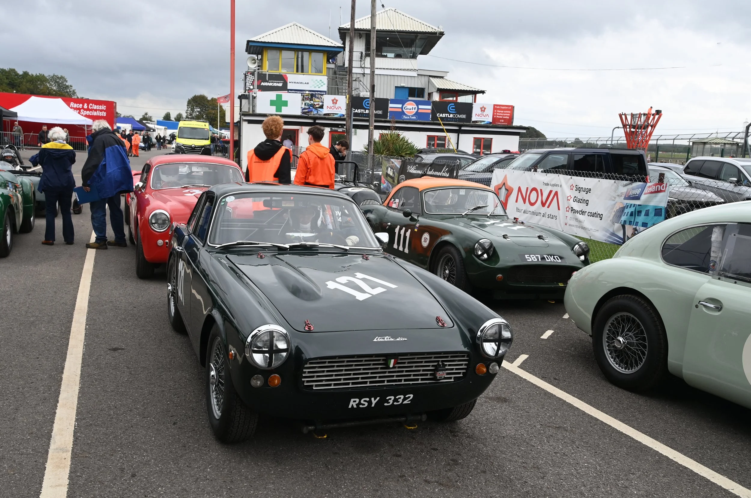 We had a strong entry of 28 cars, slightly down on last year, but it should be noted that last year’s entry contained a number of invitation cars, and we had none this year. Most of the entries were FISCAR stalwarts but Read Gomm in the smart Jaguar XK140 was new to us and it was great to see the return of Jason Kennedy in the rare and splendid Lancia Aurelia B20GT. Harry Naergar brought the Jowett Jupiter out with us for the first time this year as he had ‘saved’ the car for the Le Mans Classic and then had mechanical issues that had prevented him from entering at our BDC race.`