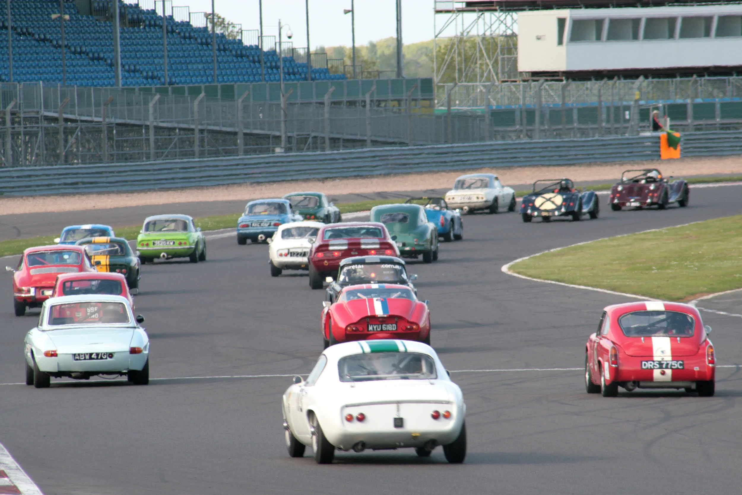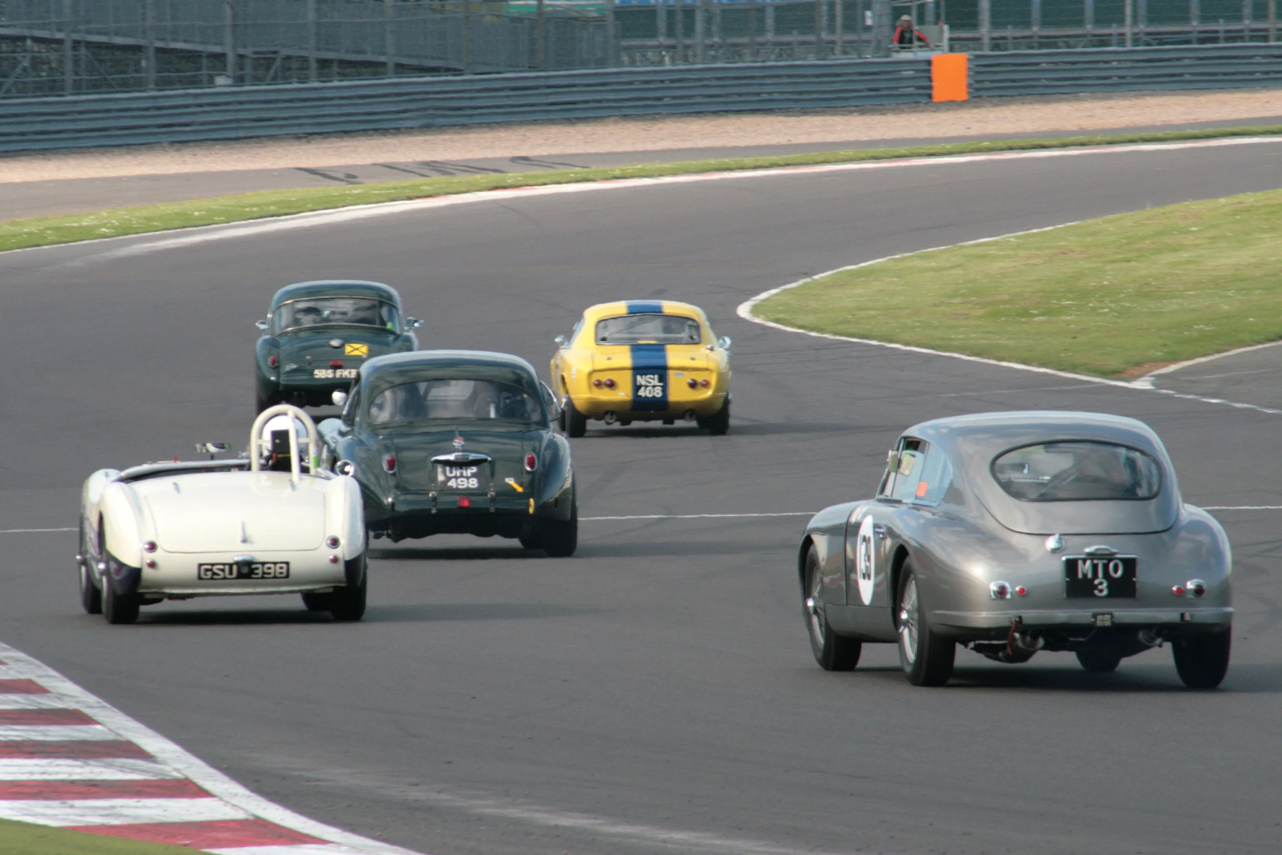 FISCAR at its best 5 marques - MG, Lotus, Jaguar, Austin Healey and Aston Martin in close formation