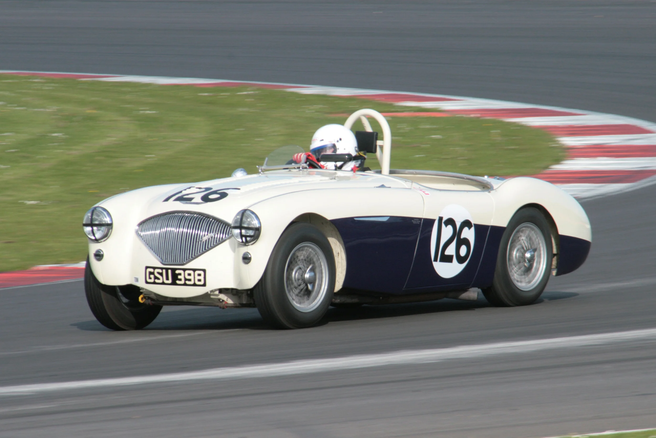 Nigel Grice retired the Austin Healey after just 3 laps. Our Austin Healey captain has not had the best of starts to his season having failed to start the Abecassis race just a month earlier. Photo - John Turner