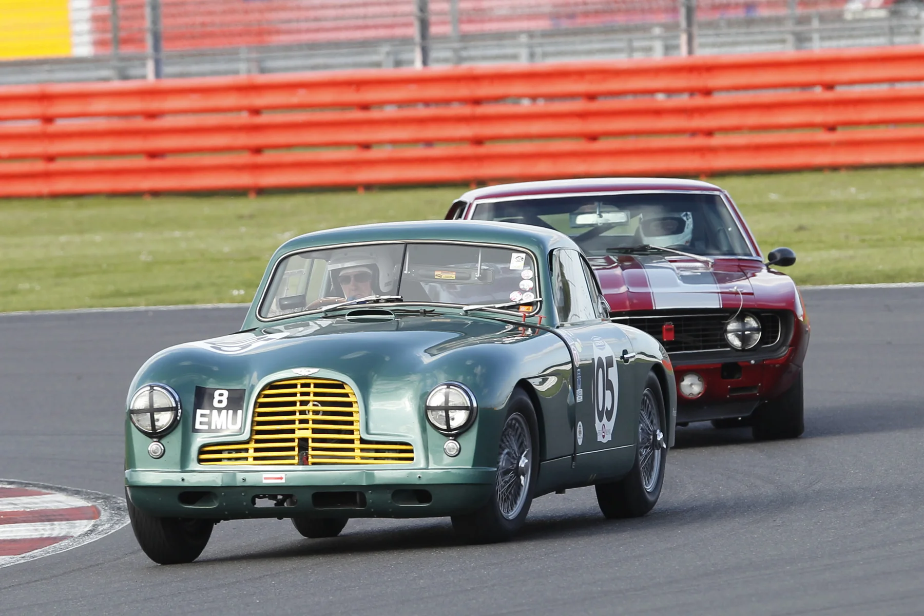 Andy Sharp briefly ahead of the Camaro in the early part of the race had to give best to the 'grunt' of the later car but less than a second split them at the flag and in fact the ASTON'S BEST LAP WAS VERY MARGINALLY QUICKER THAN THAN THAT OF THE cA,MARO. pHOTO - Mick walker