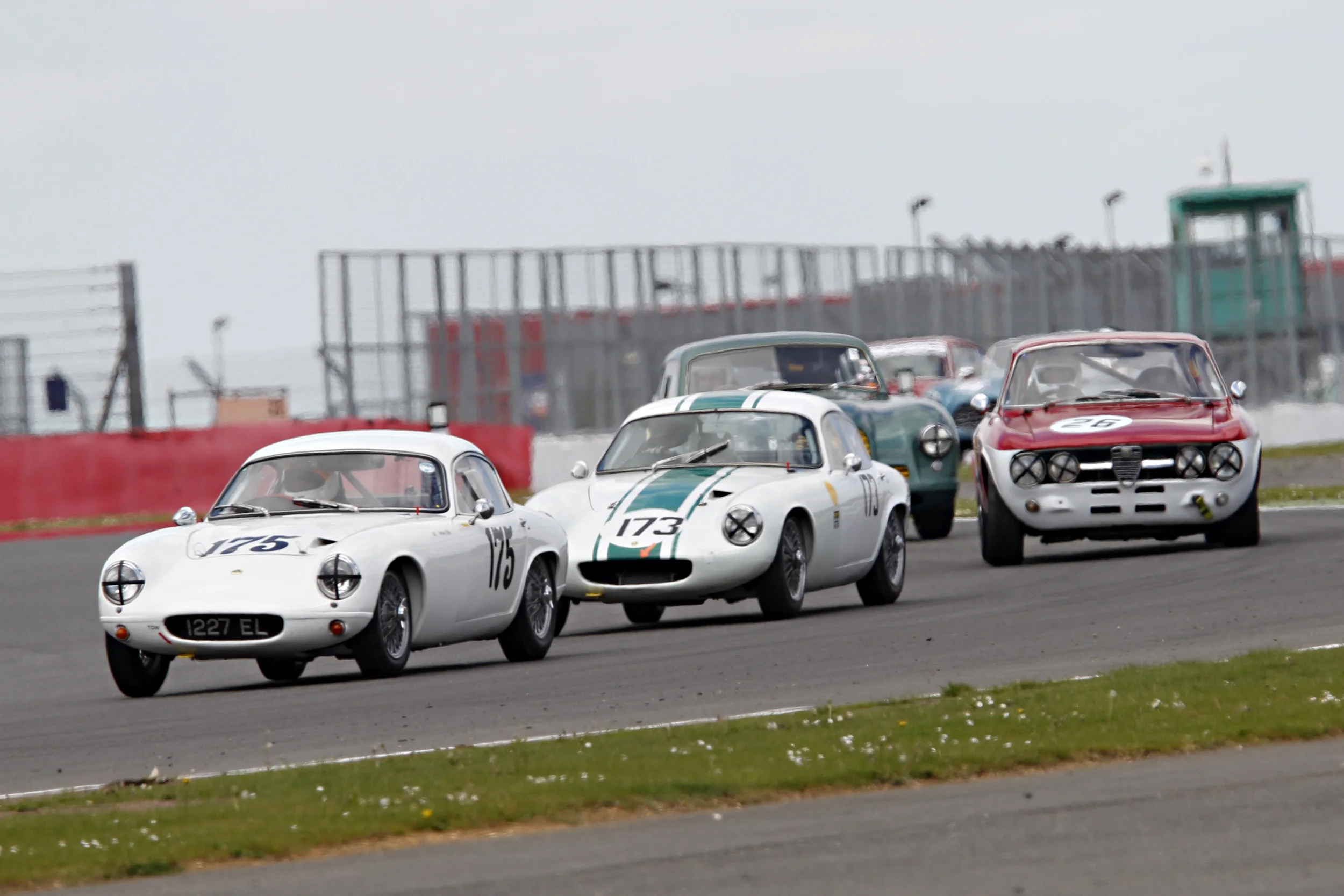 the Lotus elites of Robin Ellis and Jonathan Smare, the latter making a particularly good start got ahead of the sharp Aston early on. Photo - Mick Walker