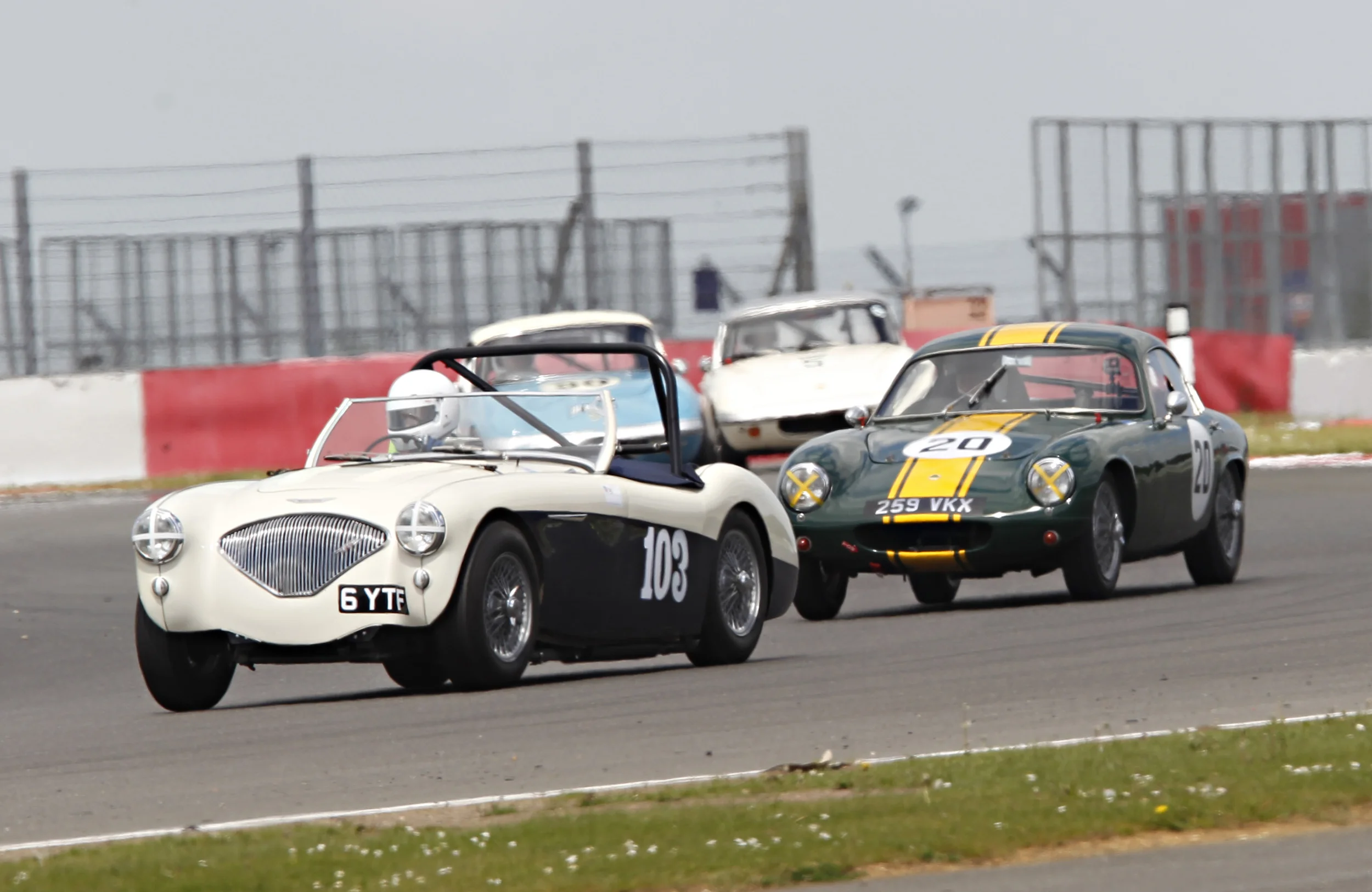 Matthew Collings and Mike Freeman in line astern although the Elite is actually about to lap the austin Healey